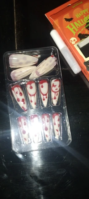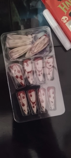 Give your Halloween look a dark, artistic twist with these press on nails inspired by Japanese horror comics (Tomie style). Their gothic, detailed design turns your hands into a chilling masterpiece.